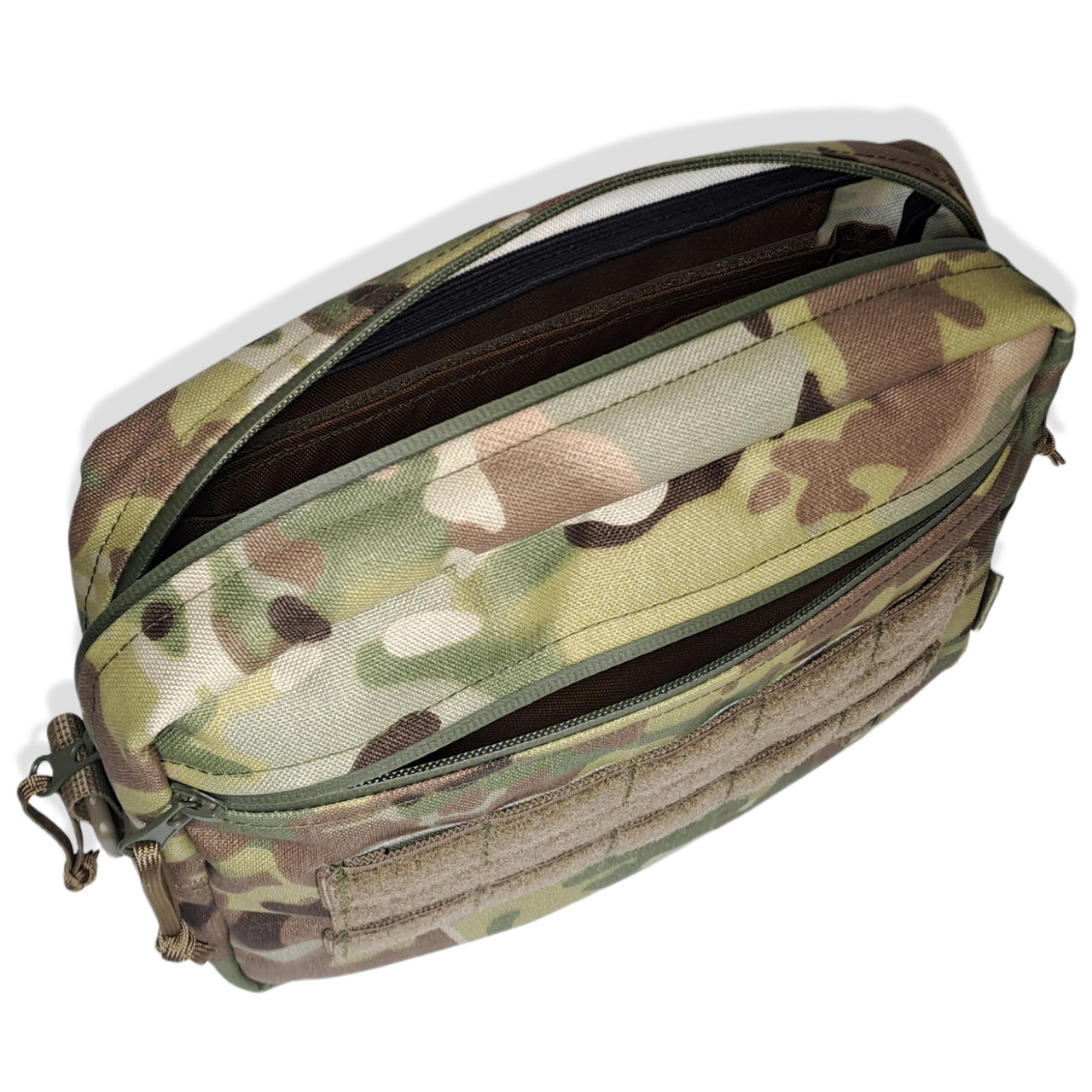 Спереді: смужки MOLLE з липучками + ще один карманчик на водонепроникній блискавці.