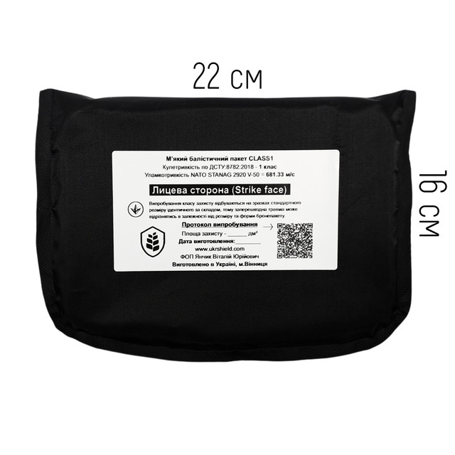 Розмір балістичного пакету в напашник: 22×16 см